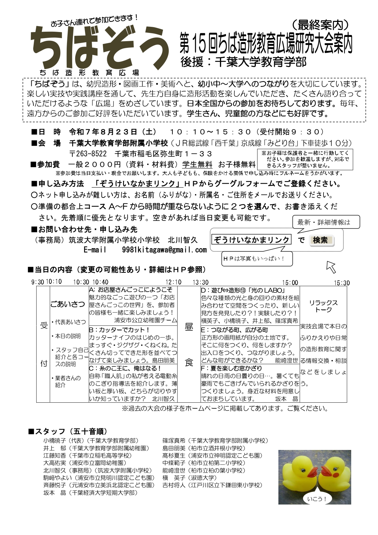 ちばぞう(ちば造形教育広場) 旧ページへ さまざまな造形教育関係のリンク集です 最終更新日 2025.4.29
