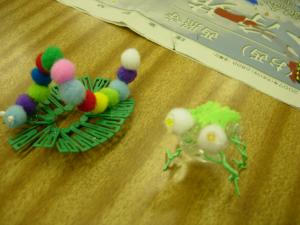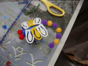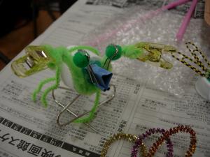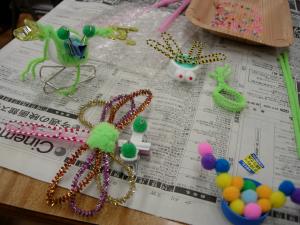 | 身近な文房具や生活廃材などを集めて 組み合わせると・・・ はい、おしゃれな昆虫が誕生します。 学名は、ぜひ発見者(製作者?)の名前を 入れてつけてくださいね。 |