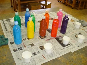 絵の具と水の量を加減してよく振って混ぜます。