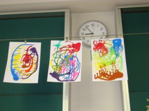 ながら画用紙をまわしてえのぐのおさんぽをし