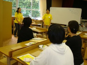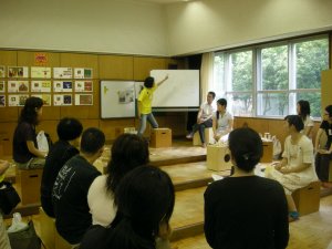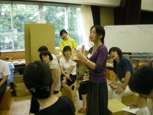 | 参加者を入れ替えて2回目の活動です。 床で活動することと台の上や机の上で 活動することだけでも違いがあるようです。 |
