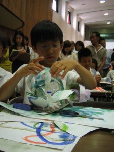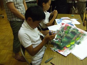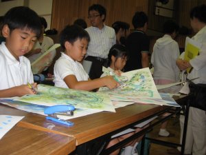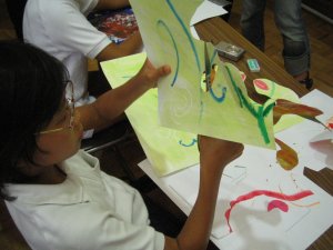 2008 授業T(5年) 「形や色がとび出すよ!絡まるよ!」 〜互いの見方の重なりやずれの発見から 自分らしさを自覚する〜 担当 佐々木 真治 |
