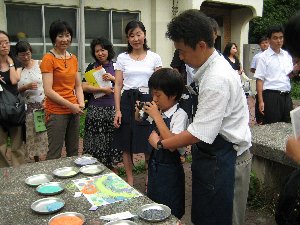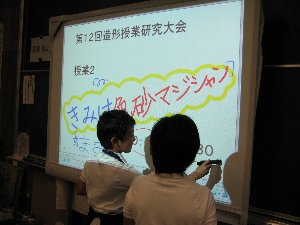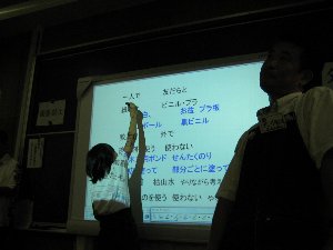 写真を撮ると、画像が電子黒板に転送されます。 教師のみんなは驚いてくれるかな。 アイファイカードという無線SDカードを使用して います。 授業の様子を毎日新聞のインターネットニュース でとりあげていただきました。 ニュースを見る |