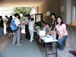 | 受付です。 事前申し込みをされた方の紀要は確保してあります。 紀要は十分用意してありますが、当日受付の場合は なくなり次第終了とさせていただきます。 (入場、参加はできます) |