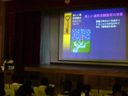 | 午後の提案は、講堂で行いました。 とても涼しかったです。 |