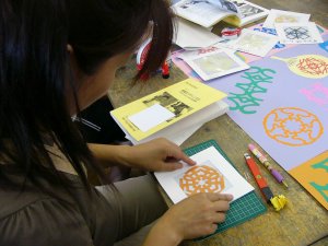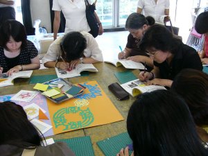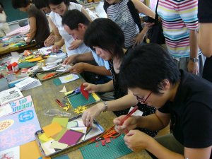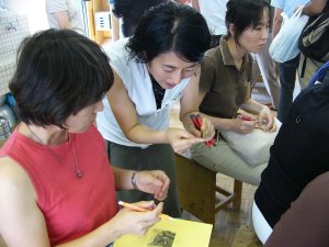 | 和紙や色紙を4つ折りや6つ折りにします。 今年の抱負や好きな漢字を1文字程度 決めます。 |