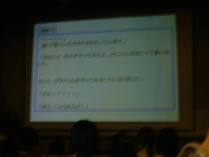 | 4つの場面を文章だけで紹介し、自分の印象 をもとに絵に表す活動です。 かかわり合いをうながすための手立てについ てもわかりやすく紹介していただきました。 |