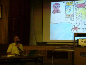 | 造形授業研究会には毎回参加してくださっ ていた佐々木真治先生が、大会運営スタッ フに仲間入りしました。 今回は、佐々木真治先生に、実践をもとに した提案をしていただきました。 |