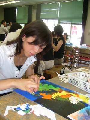 | 切って貼り、ローラーを重ね・・・ | |